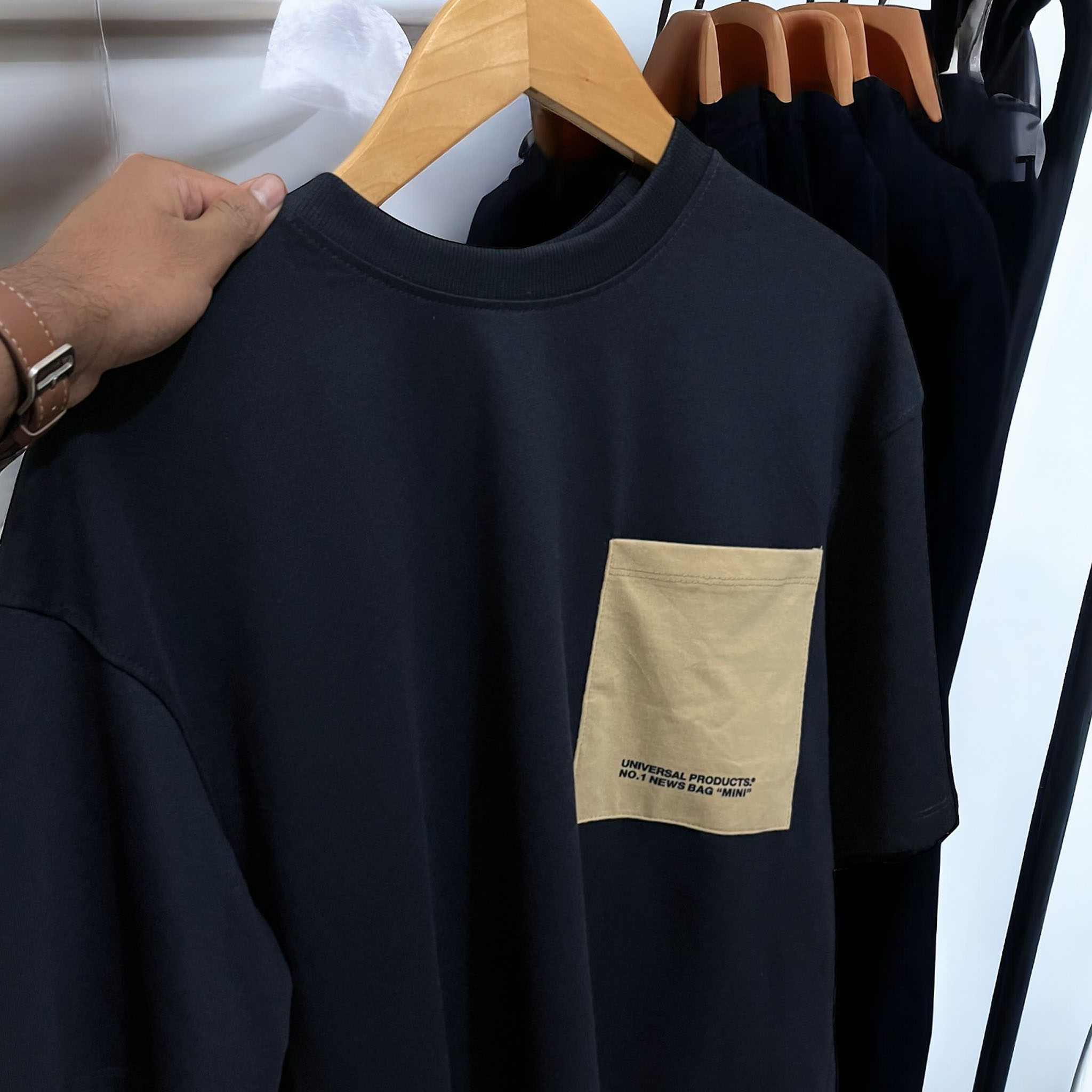 Heavy Weight Navy Arc Oversized T-shirt With Pocket.